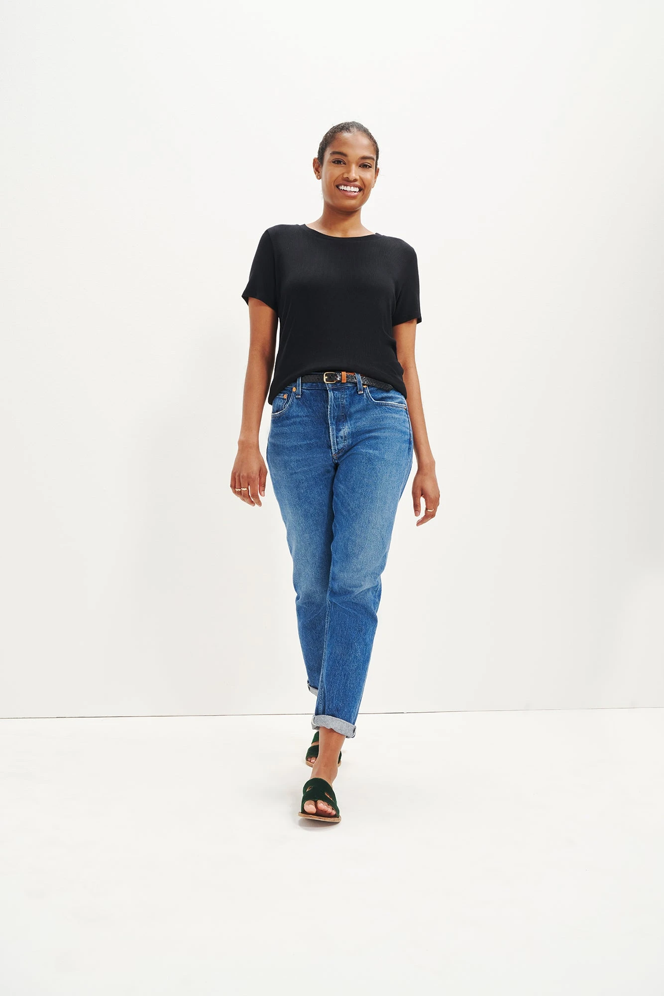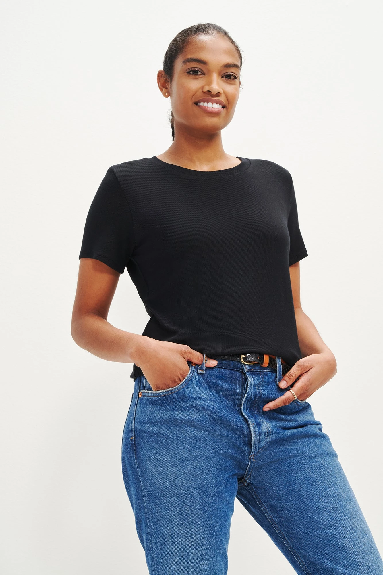 Short sleeve tee with an open neck and clingy, relaxed silhouette. Made in our silky-smooth Dream Rib, perfect for layering or wearing alone.