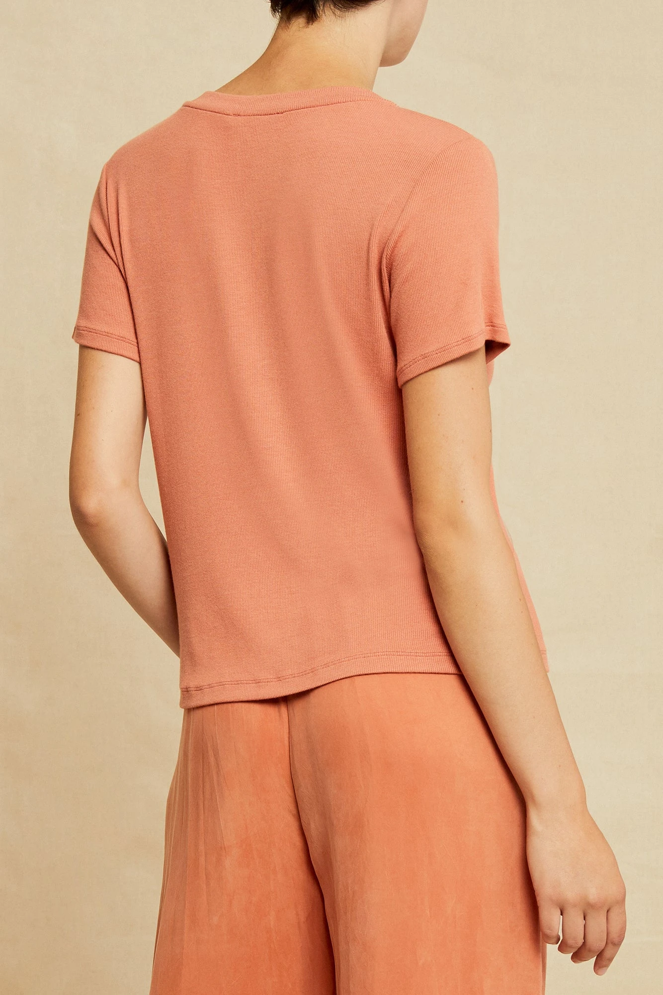 Short sleeve tee with an open neck and clingy, relaxed silhouette. Made in our silky-smooth Dream Rib, perfect for layering or wearing alone.