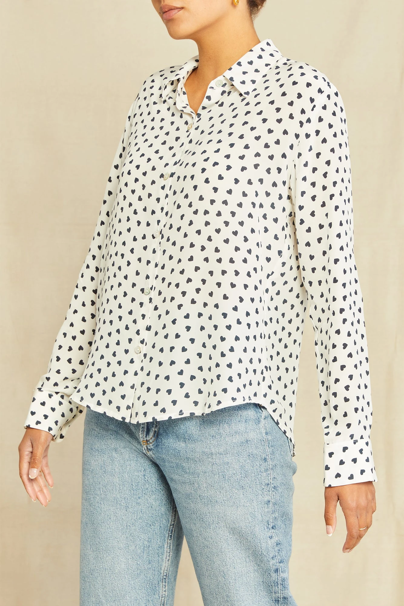 Long sleeve button-down blouse with a collar and easy, relaxed fit. Made in our finest silk, this is the perfect staple to have year-round.