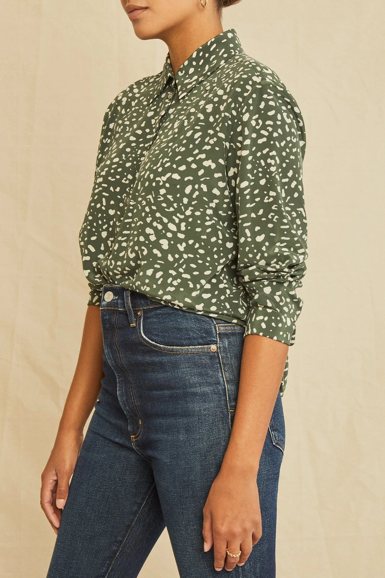 Long sleeve button-down blouse with a collar and easy, relaxed fit. Made in our finest silk, this is the perfect staple to have year-round.