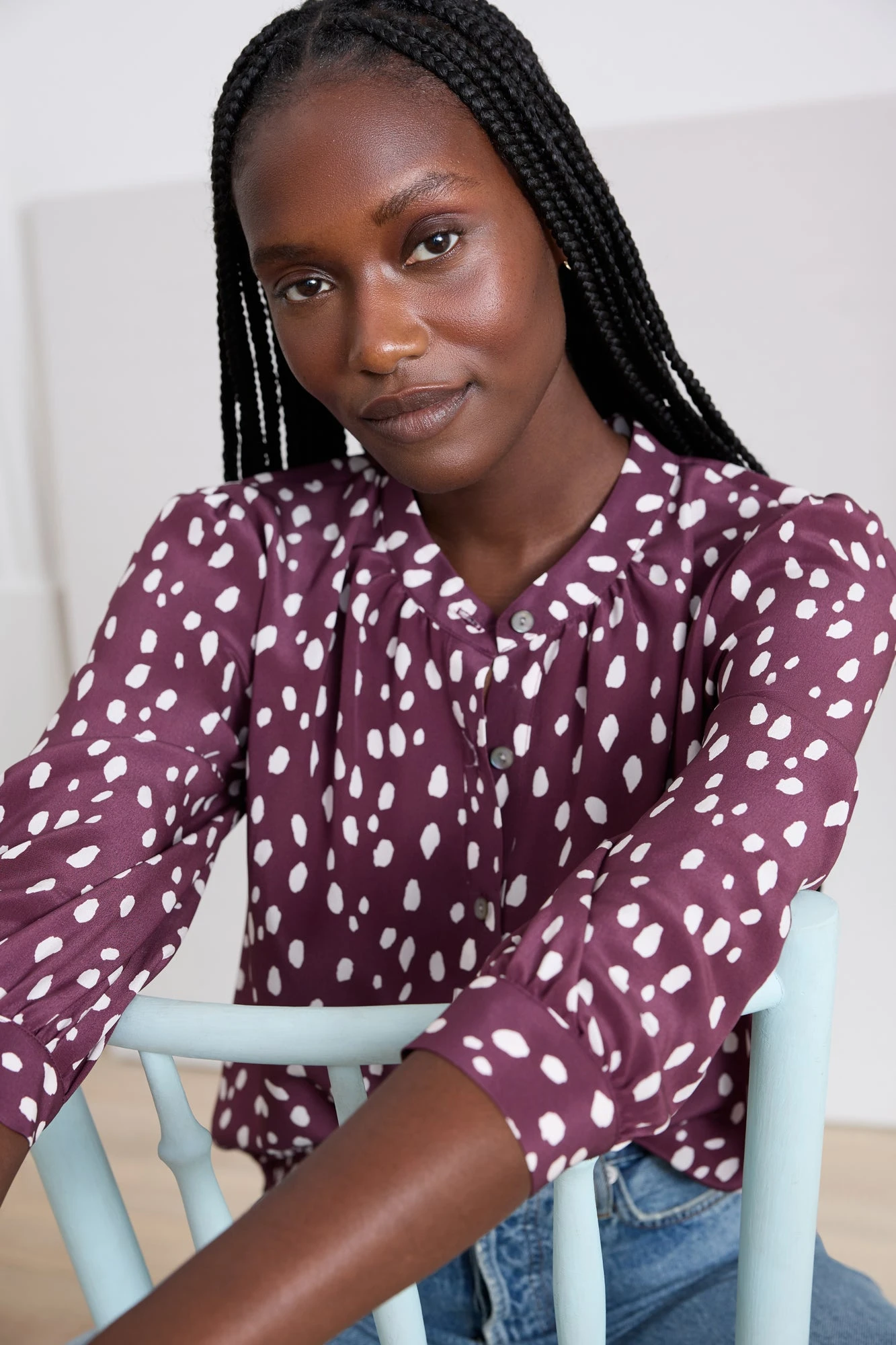 Charlotte 3/4 Sleeve Washable Silk Blouse – Pebble Dot Plum