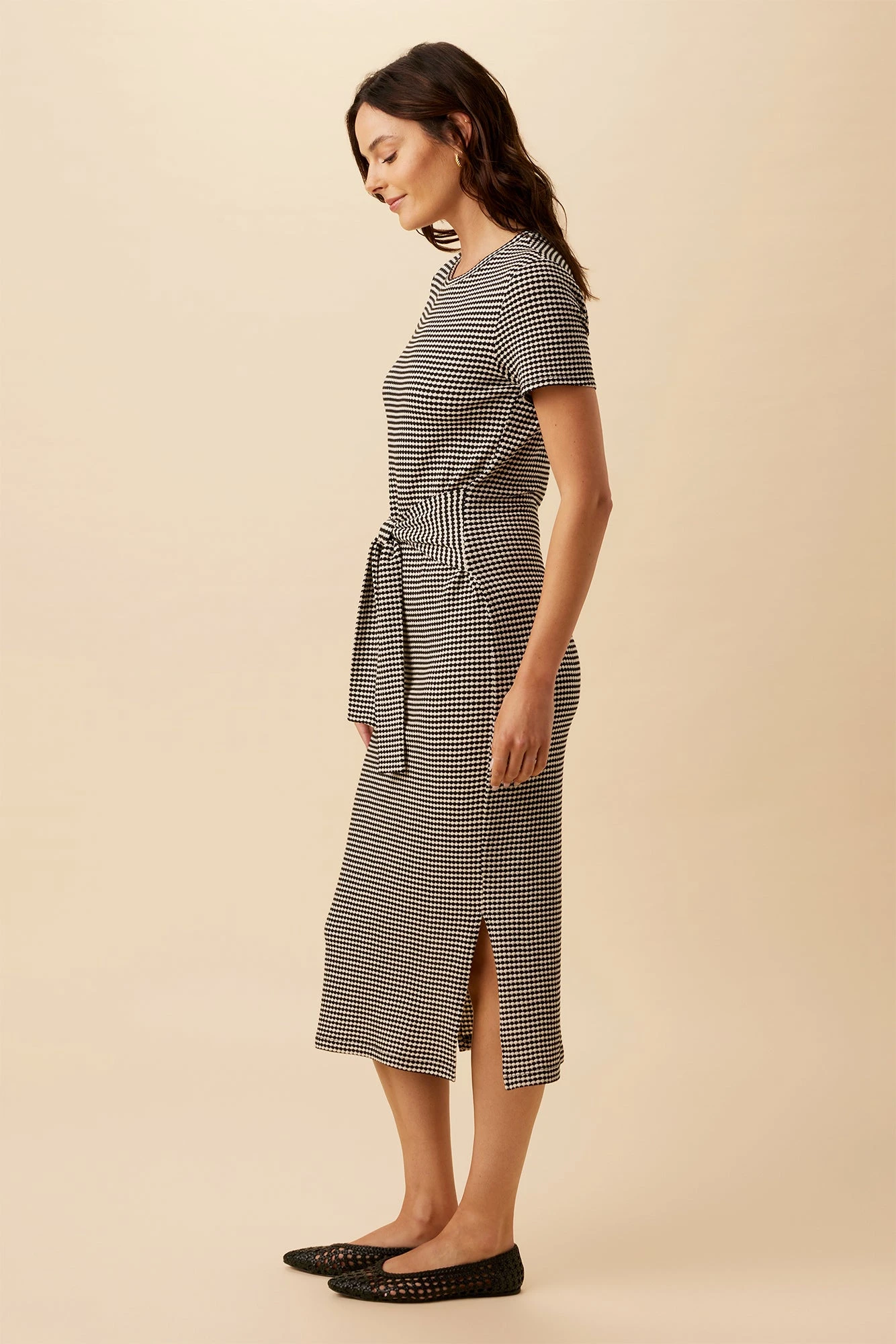- Short sleeve midi length dress that is as comfortable as it is flattering.