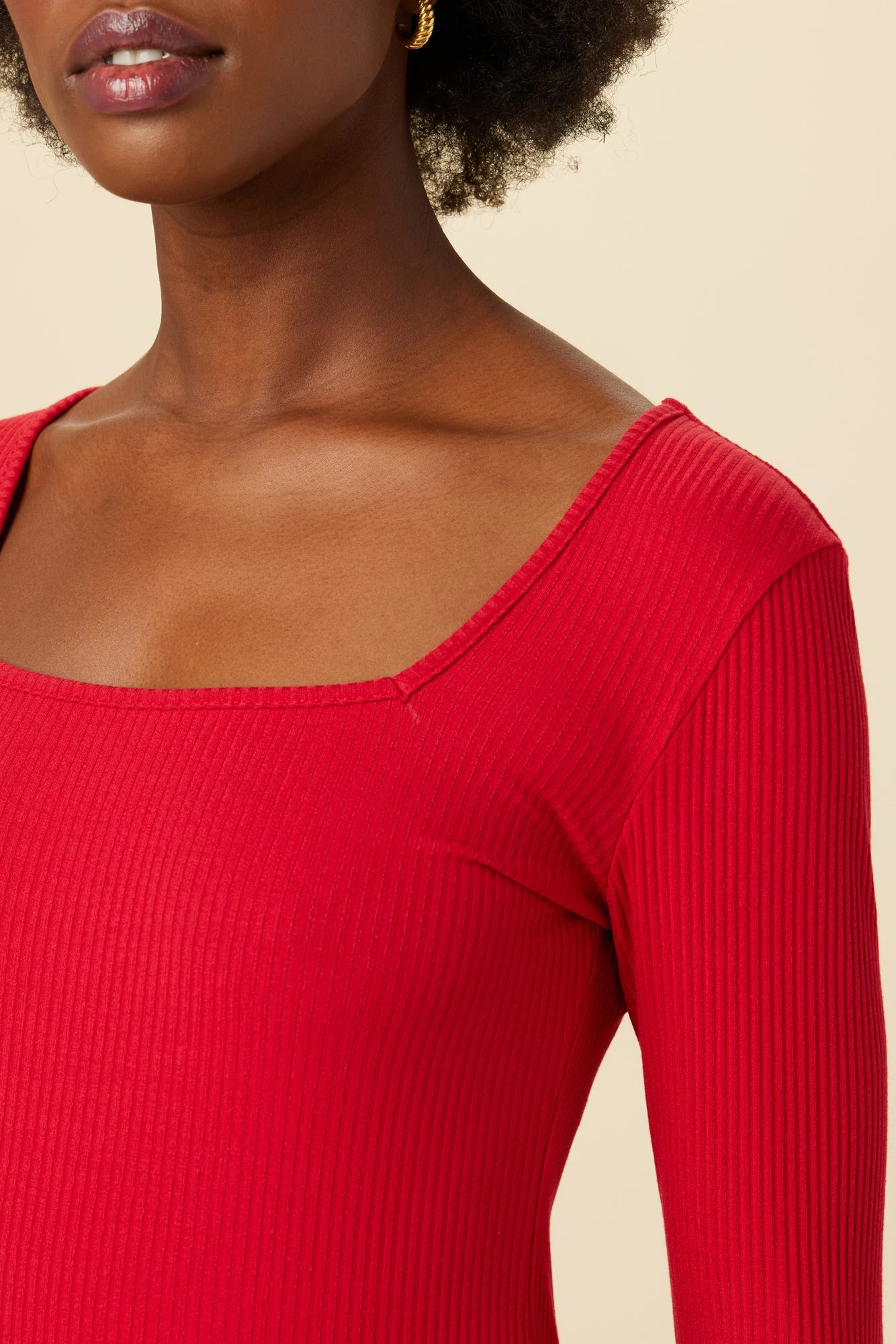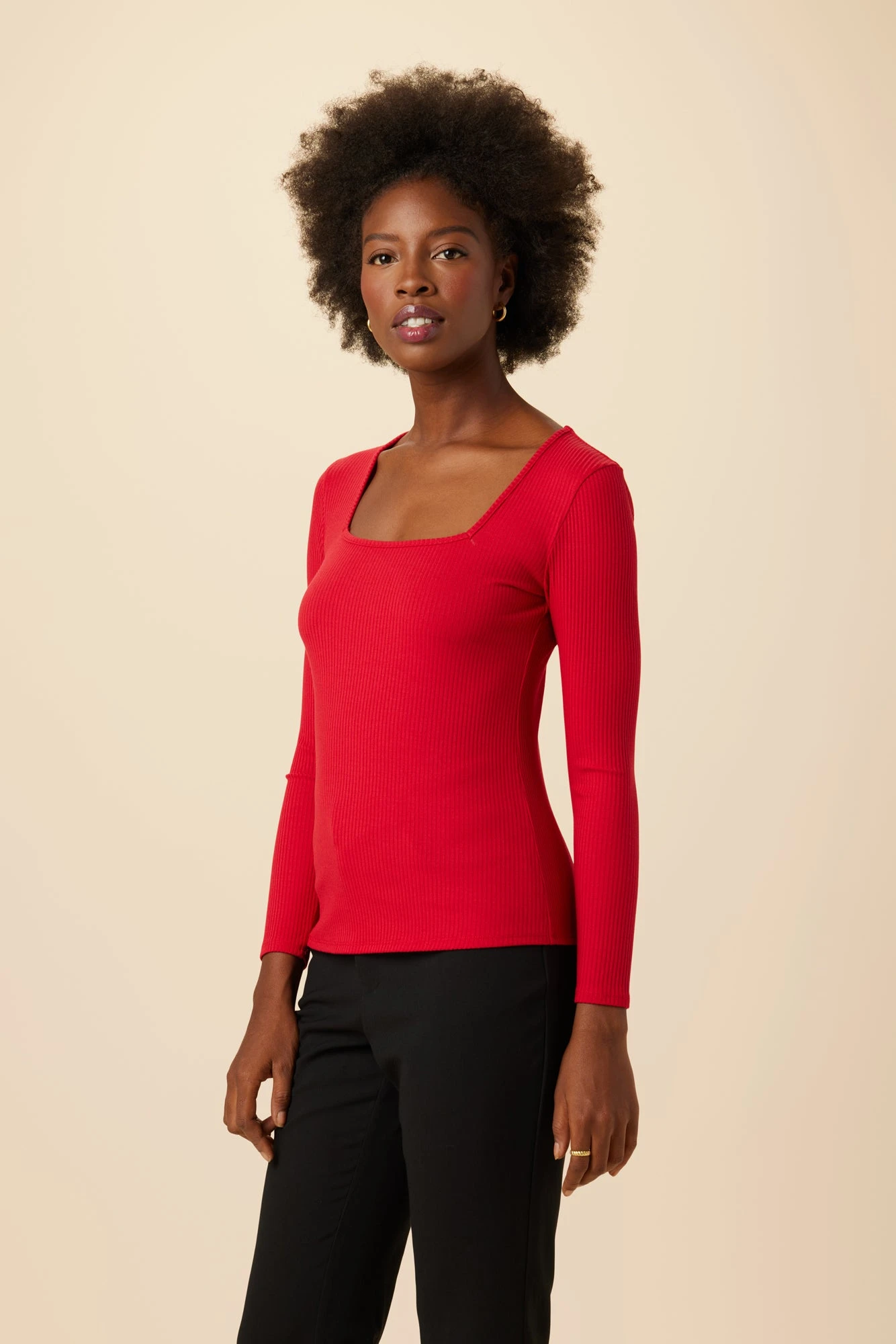 Long sleeve top with a square neckline and fitted silhouette, made from our signature Paris Rib fabric.