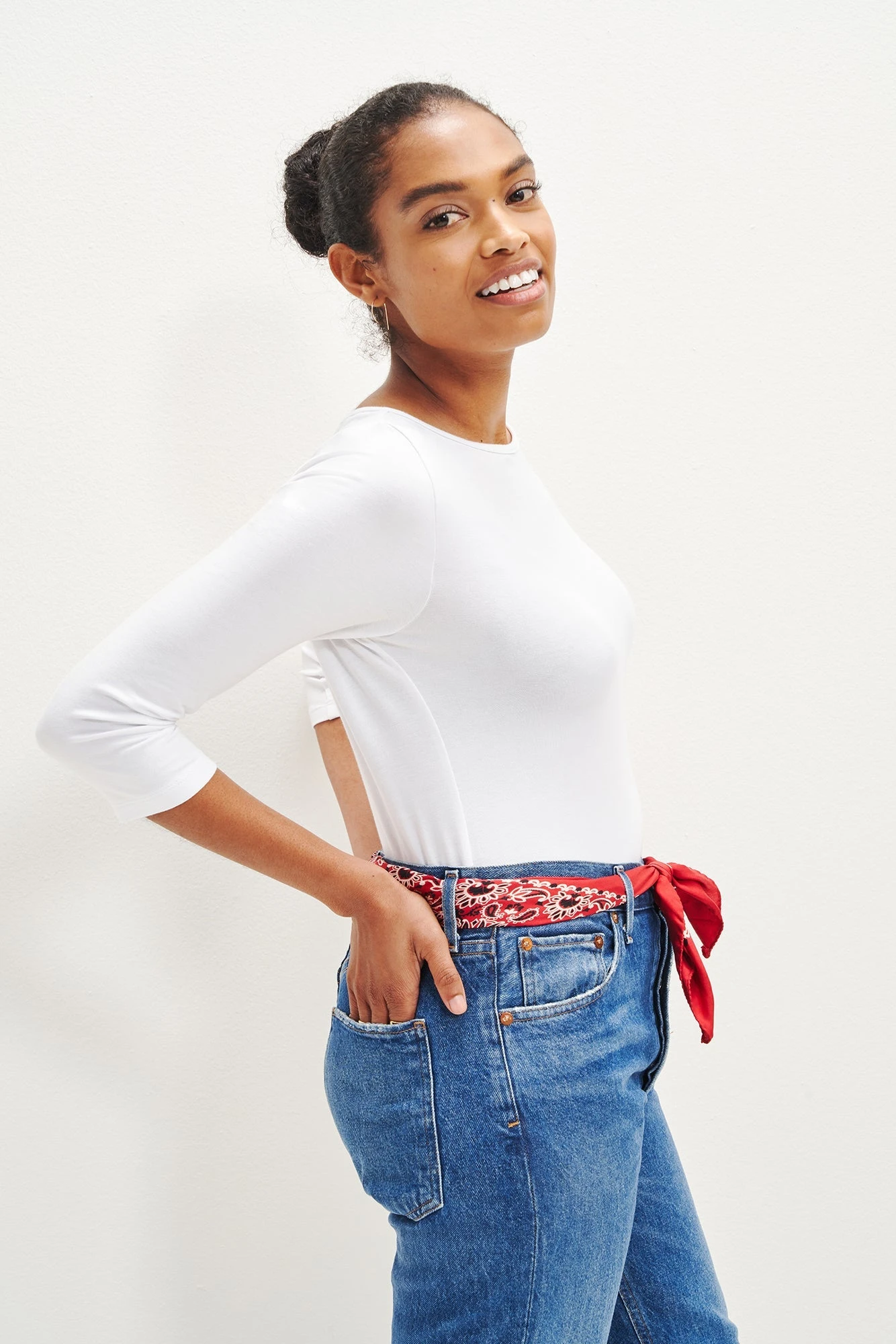 3/4 sleeve tee with a classic boat neckline and easy silhouette. This super soft and versatile tee is made from our signature Dream Knit.