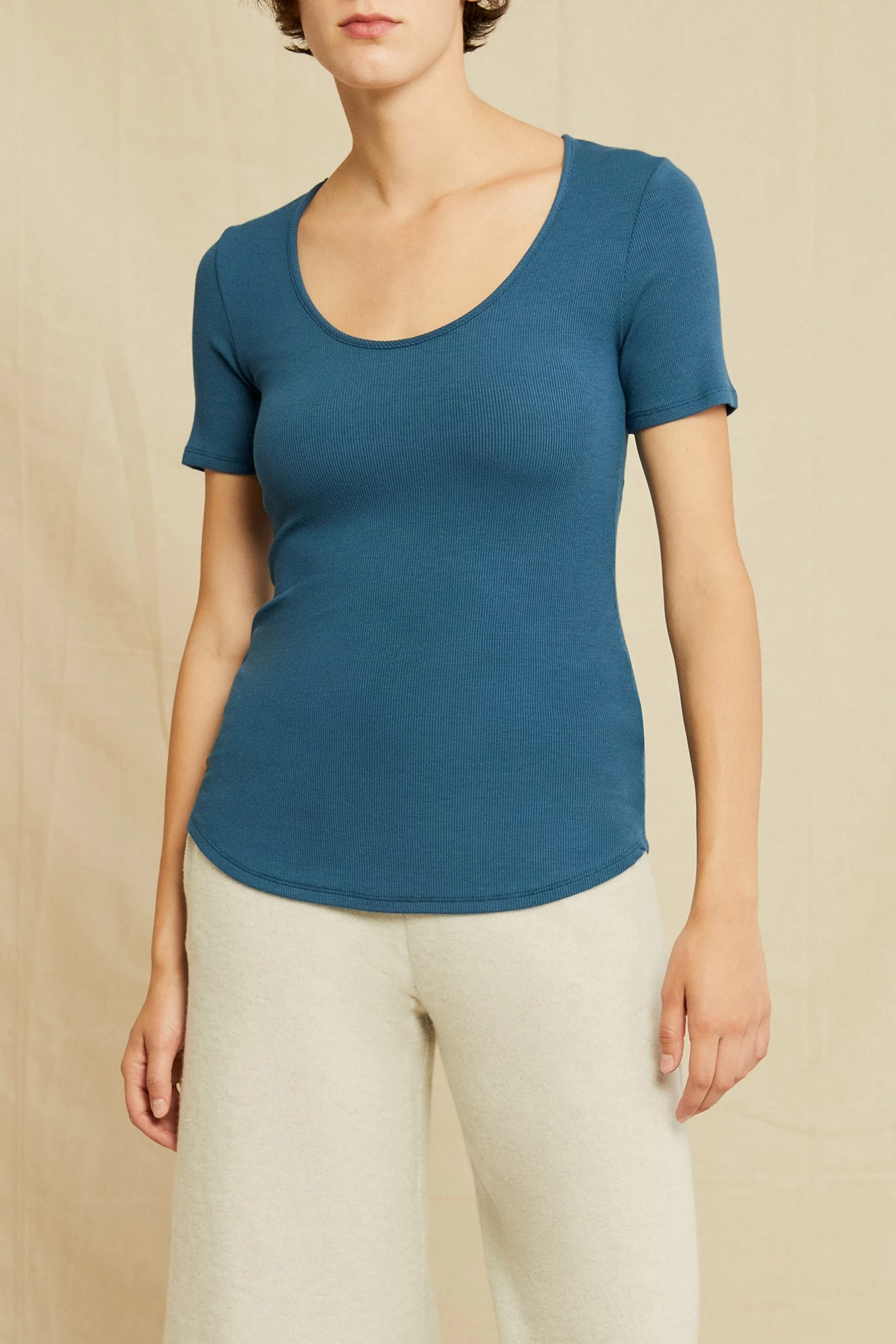 Short sleeve tee with a scoop neck and shirt-tail hem. A great layering piece made from our lightweight, super soft Dream Rib fabric.