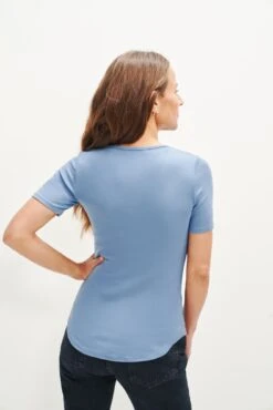 Short sleeve tee with a scoop neck and shirt-tail hem. A great layering piece made from our lightweight, super soft Dream Rib fabric.
