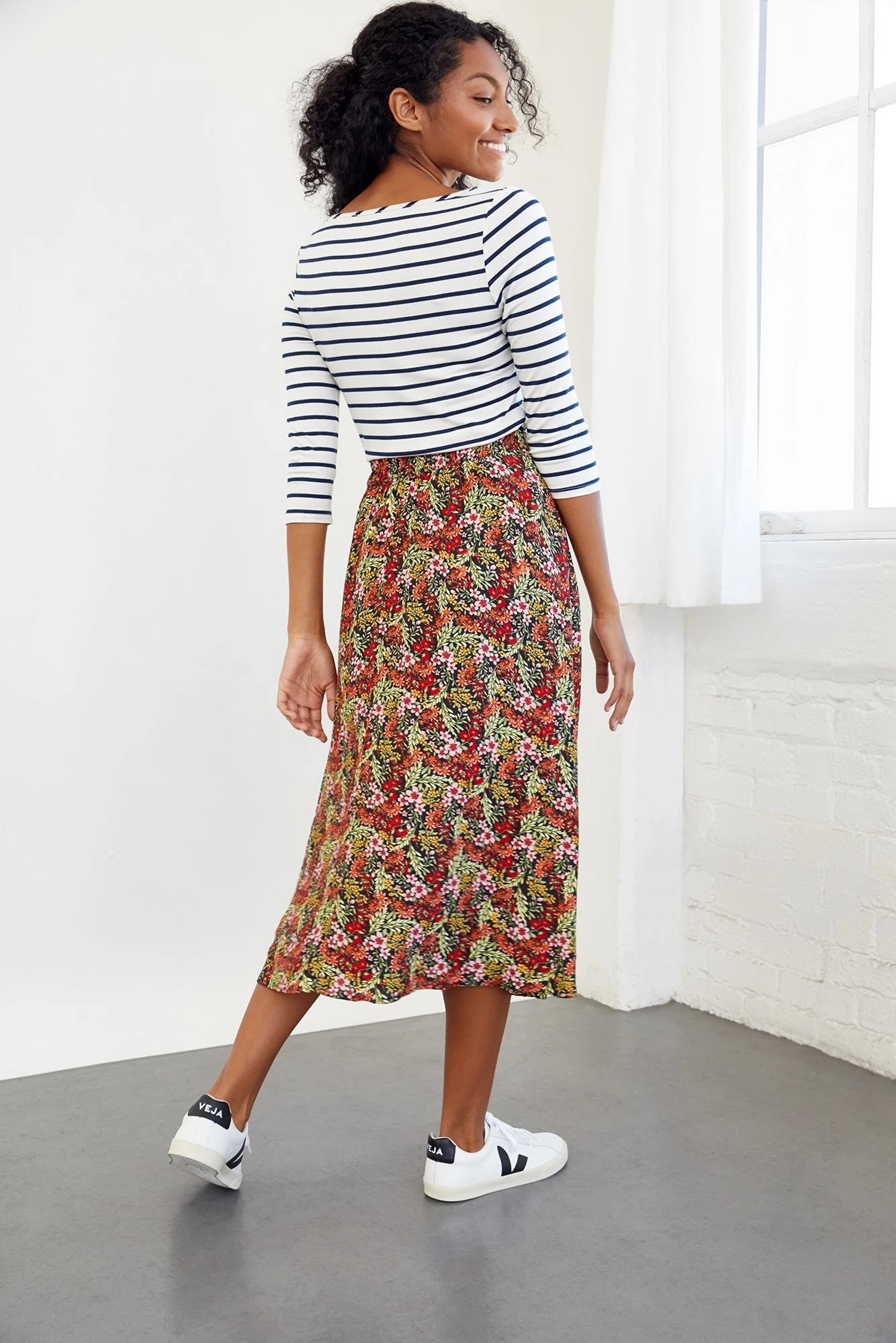 Midi skirt with a flat front and elastic at the back waist, made from our luxuriously silky viscose, a fabric made from wood pulp.