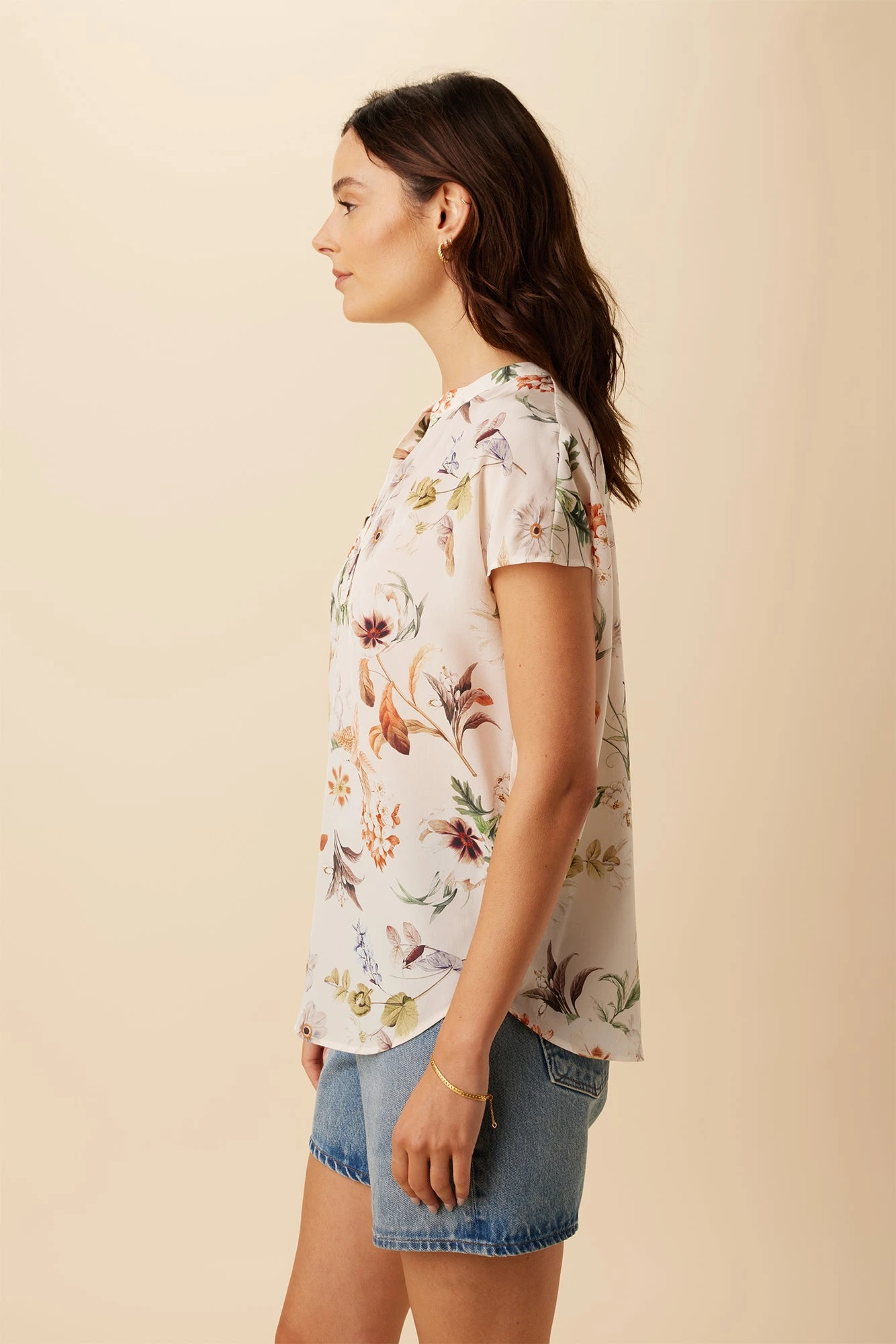 Renata Washable Silk Blouse – Botanic Floral Ivory