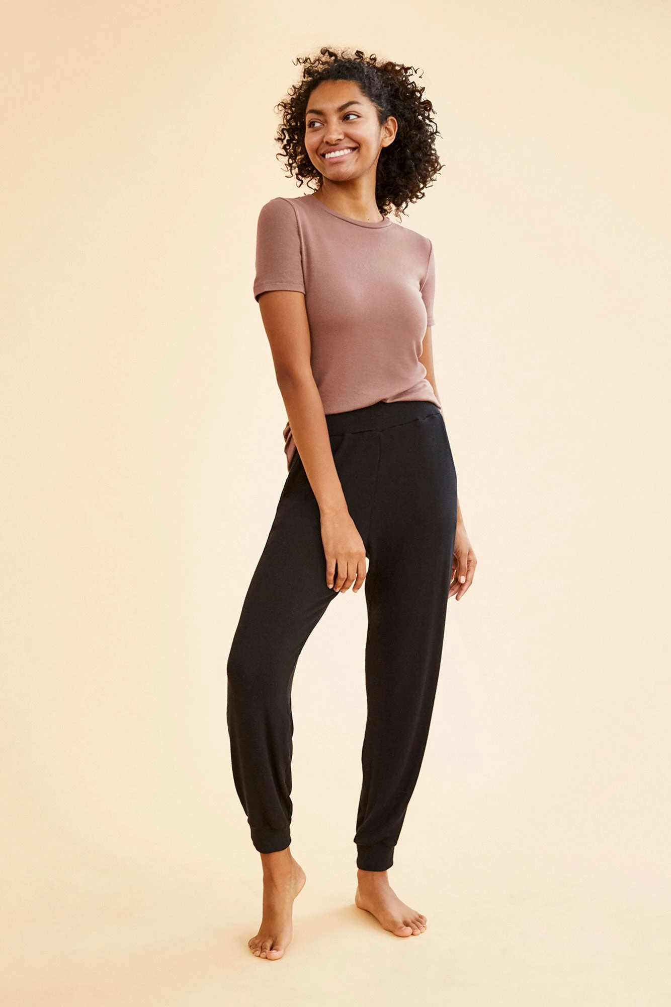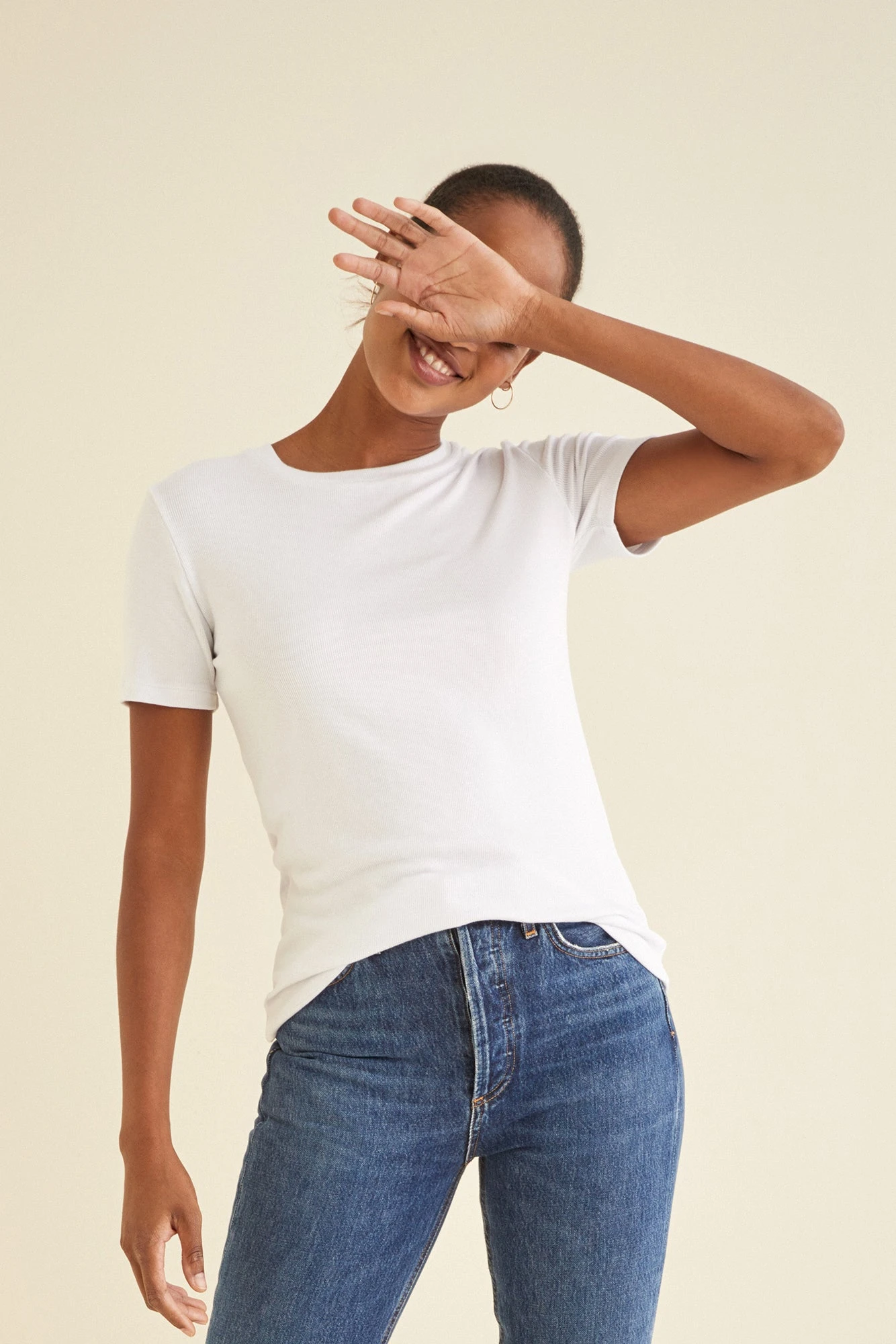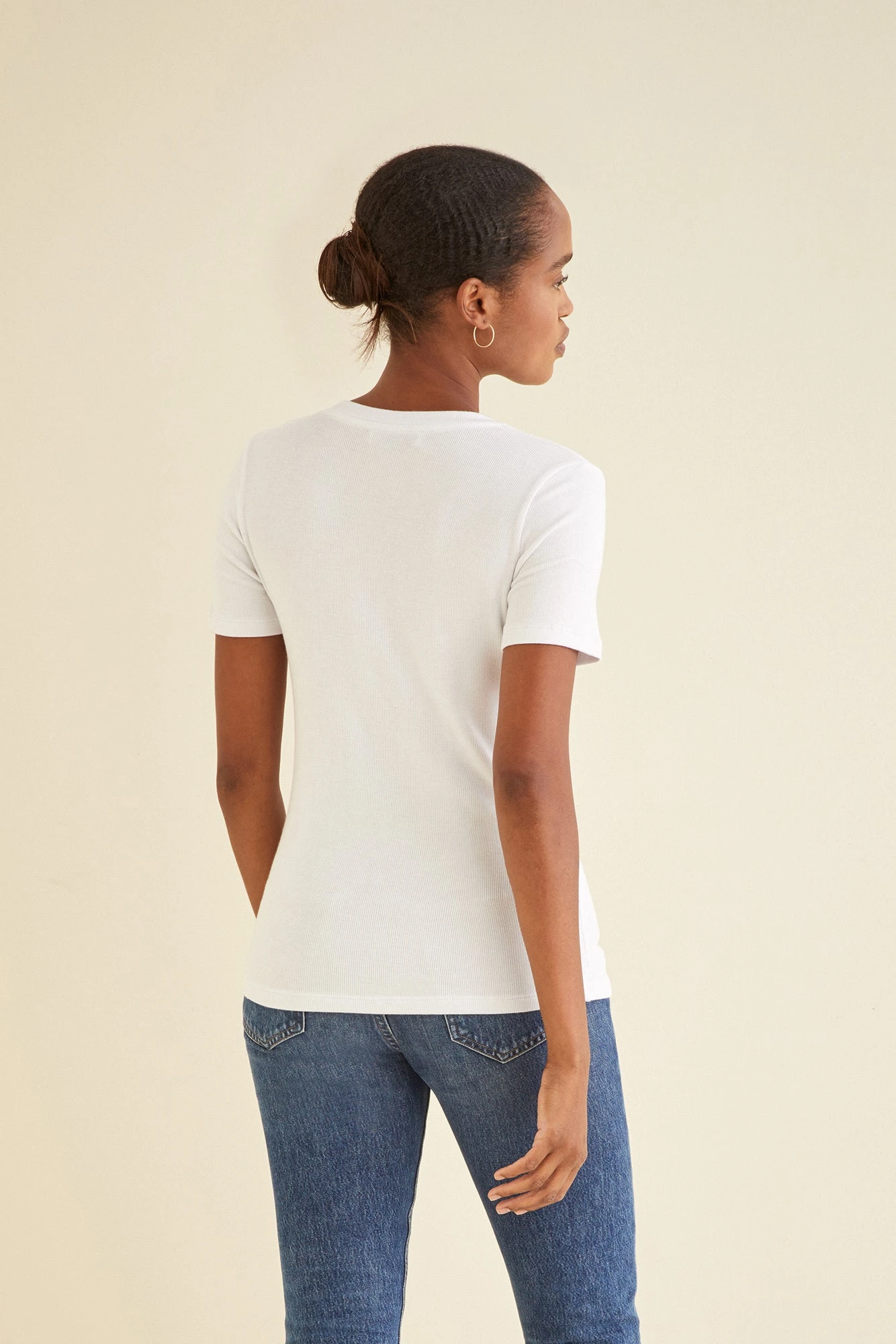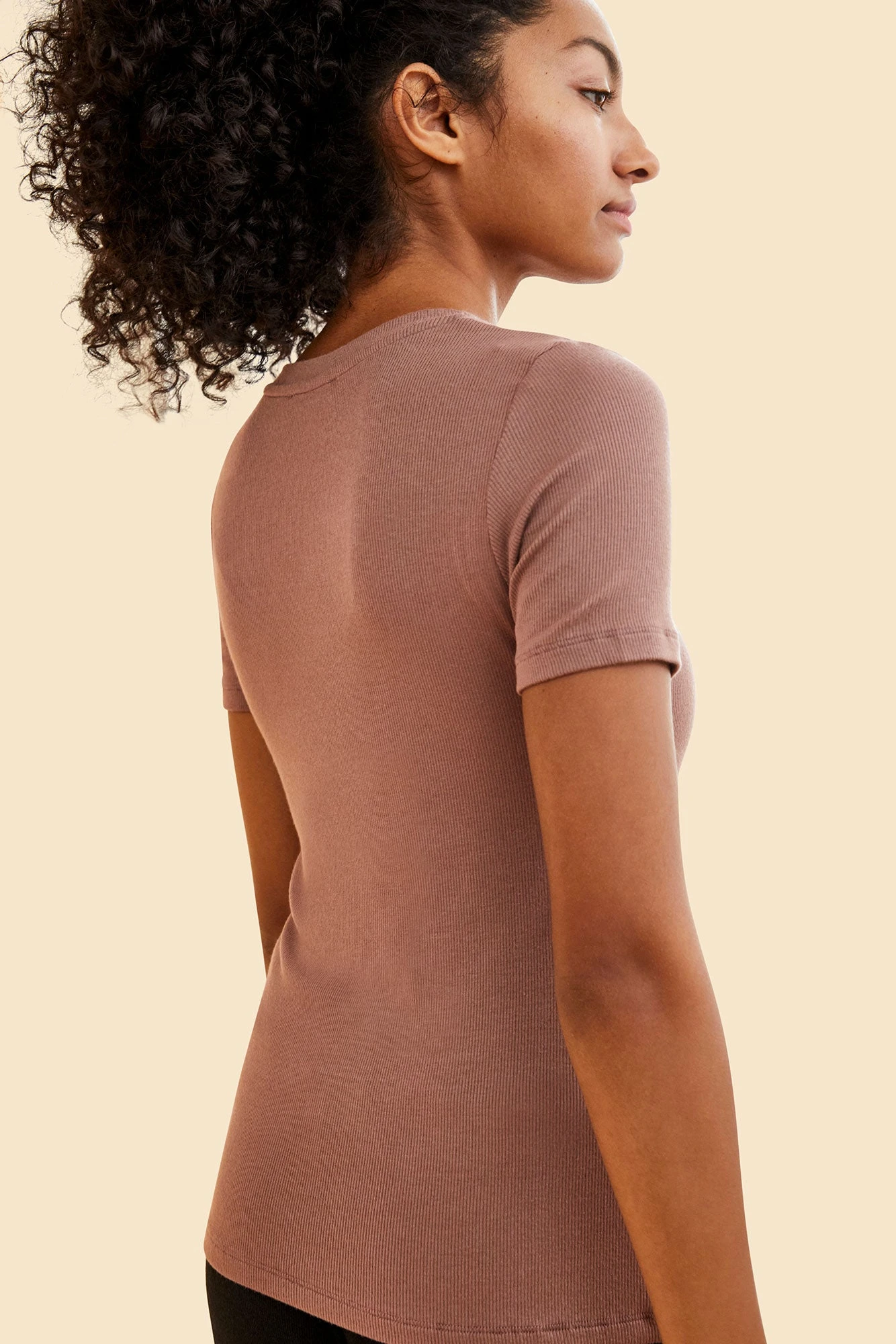 Short sleeve ribbed tee with a set-in sleeve. Made from our softest dream rib fabric, this tee is a must-have basic.